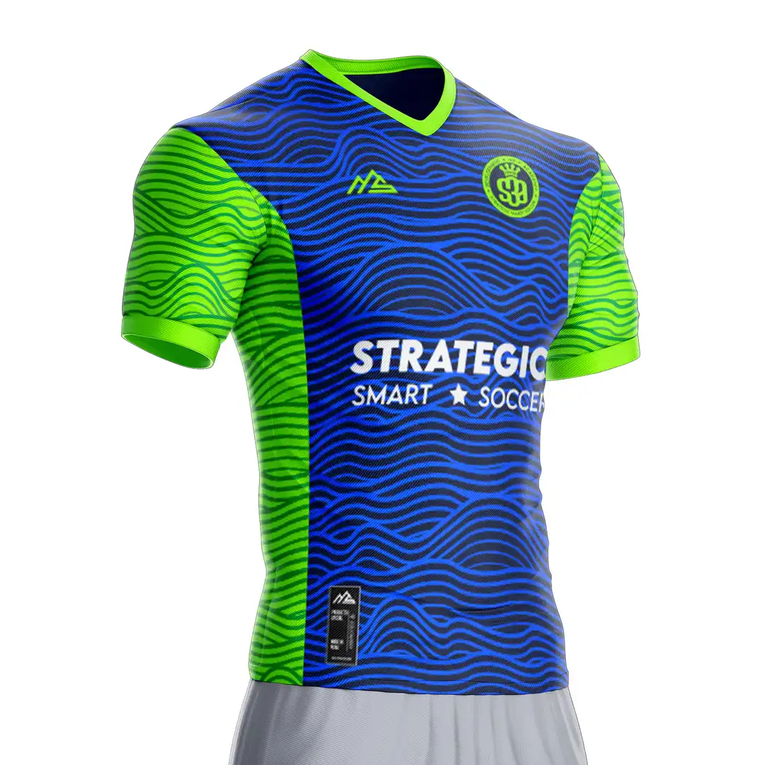 The Green Training Jersey is part of the official practice kit used by players at Strategic Smart Soccer Academy, designed for comfort and performance during youth soccer training sessions.